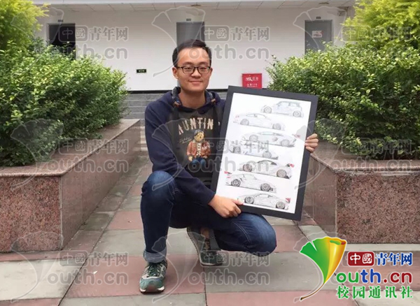 記者了解到,該學生名叫蔣明杉,是成都文理學院美術學院廣告設計與制作專業(yè)的學生。蔣明杉表示,他從初中就開始繪畫汽車,到現(xiàn)在近8年時間,因為熱愛汽車,就一直堅持,已經(jīng)繪制近千幅作品。直到現(xiàn)在,他每天都在堅持繪畫,他相信自己會獲得更大的成功。