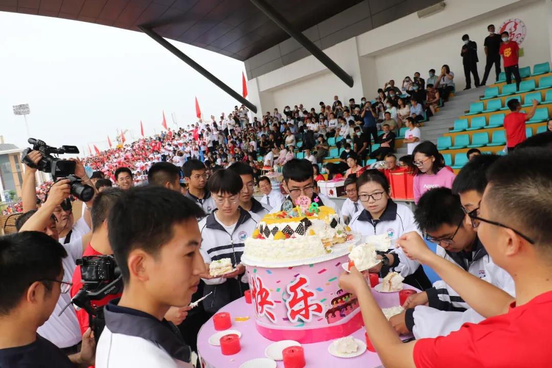 十八歲,成年成人;十八歲,成長成才。學校每年在這個時候都會為學子們舉行集體生日,家長們則為每個班準備了生日蛋糕,在父母、師長的見證和祝福下,同學們走向人生的新階段。年級主任解鴻志、張高強老師共同推來一個巨型蛋糕,老師們一齊向?qū)W生祝福,校領導共同為學生點燃生日蠟燭,伴隨著《生日快樂》的歌聲,同學們雙目微閉,雙手合十,面對父母、師長,面對自己憧憬的未來,默默許下美好愿望。