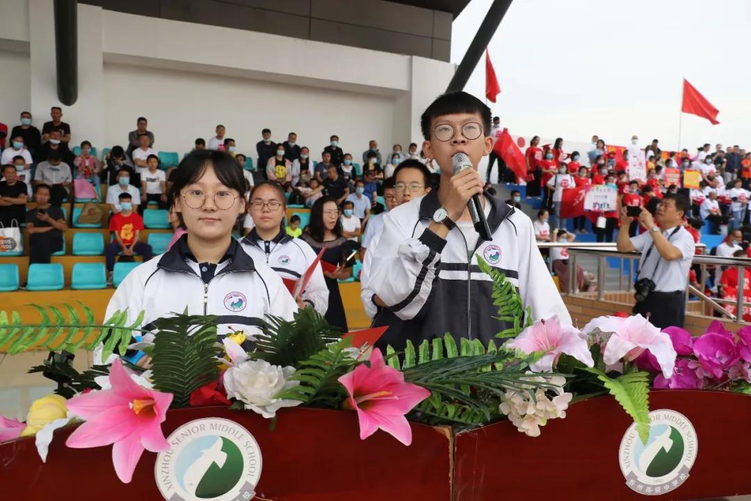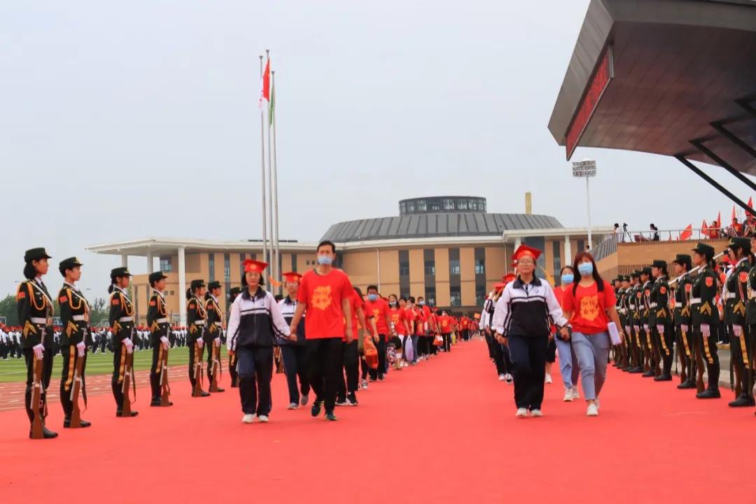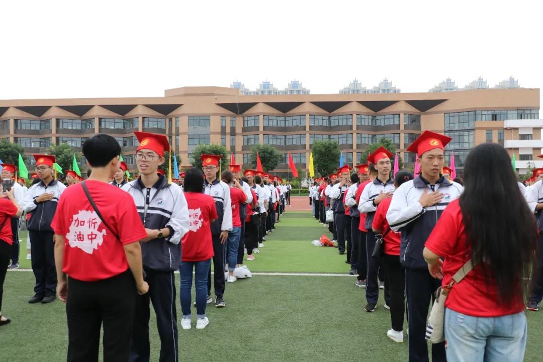 “少年智則國智,少年富則國富;少年強則國強,少年獨立則國獨立……”激昂奮進的聲音在北校區(qū)的操場上空回響,在全體高三學生《少年中國說》激情澎湃的誦讀聲中,本次大會正式開始。莊嚴的升旗儀式后,學生代表、教師代表和家長代表依次獻詞:好友同窗與共的奮斗時光,老師日復一日的悉心陪伴,父母無私無盡的付出關愛,在一句句溫情感人的獻詞中歷歷浮現(xiàn),激蕩心靈。