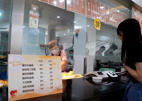 上海交通大學(xué)的食堂的各類面條實(shí)行大份、小份供餐。9月1日起,上海交通大學(xué)的學(xué)生開始分批、錯(cuò)時(shí)到校開學(xué)。開學(xué)后,學(xué)校食堂加強(qiáng)節(jié)約糧食、光盤行動(dòng)的宣傳,并采取多項(xiàng)措施引導(dǎo)師生員工文明用餐,杜絕浪費(fèi)。