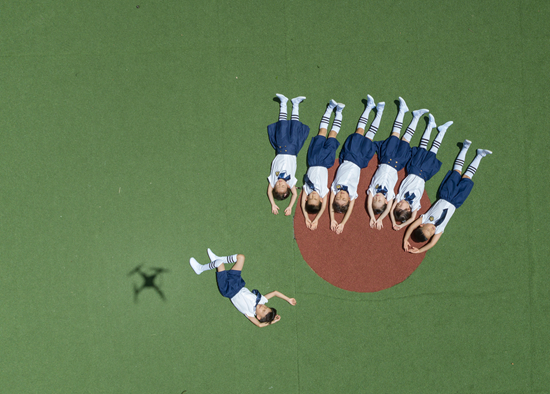 無人機(jī)航拍的一所幼兒園花式畢業(yè)照。視覺中國供圖
