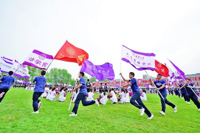 清華大學學生在馬約翰杯學生田徑運動會開幕式上表演。新華社發(fā)