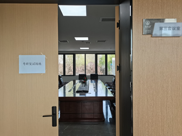 “考研復(fù)試,請勿打擾?!币虼耍瑢W(xué)校將會議室、辦公室、活動室等變身成“復(fù)試小屋”,配備上路由器、三腳架、電腦轉(zhuǎn)換接頭、接線板等設(shè)備,并掛上相應(yīng)的提示牌,還有師生志愿者進(jìn)行現(xiàn)場服務(wù)。這樣的復(fù)試場所,不僅讓校內(nèi)學(xué)生享受到“貴賓待遇”,也得到了外校考官的贊賞。