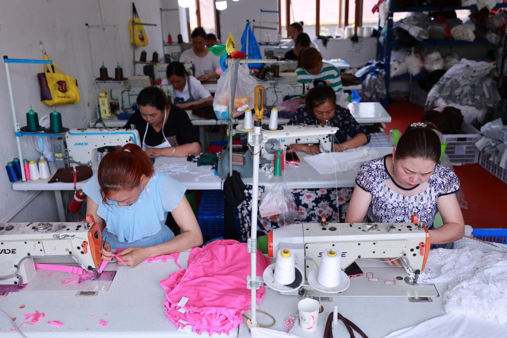 2023年7月18日,山東省無(wú)棣縣棣豐街道賈店村居民在微工廠內(nèi)忙碌。目前,棣豐街道已發(fā)展微工廠9家,帶動(dòng)就業(yè)400余人。新華社記者朱崢 攝