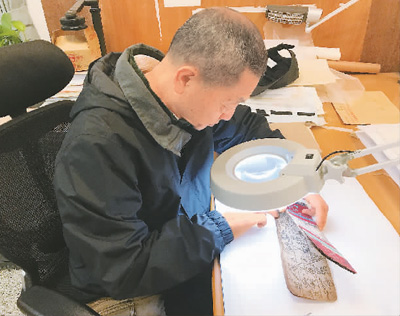 中國國家圖書館古籍修復(fù)專家在進行少數(shù)民族文字古籍數(shù)字化前的維護。