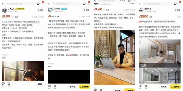大賽期間,學(xué)生們掛出了監(jiān)督學(xué)習(xí)、口語練習(xí)、妝造設(shè)計(jì)等豐富的特色商品。網(wǎng)絡(luò)截圖