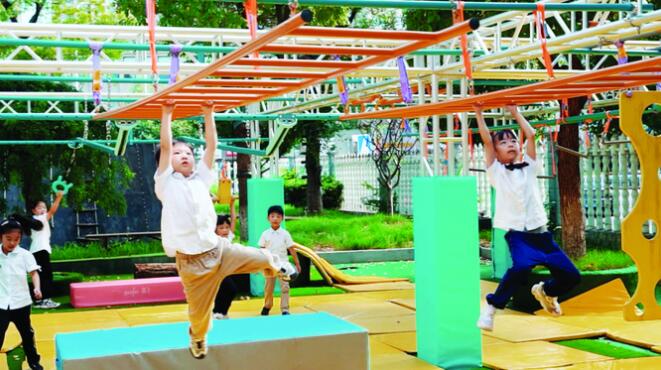 早在今年兒童節(jié)前夕,這套設(shè)備就已經(jīng)安裝完畢,孩子們特別喜歡室外的這套設(shè)施?!拔覀儗⑦@套硬核體能課程在暑假班實施的打算跟家長溝通過,大家都很支持。”王艷表示,室外課程一般安排在早晨或雨后比較涼快的時候,大部分訓(xùn)練以室內(nèi)課為主。