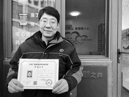 聽說(shuō)學(xué)員通過(guò)考試后可以獲得國(guó)家承認(rèn)的成人中專畢業(yè)證書,學(xué)習(xí)費(fèi)用全部由街道補(bǔ)貼,蔣風(fēng)登立刻動(dòng)了心。在工作人員的幫助下,他報(bào)名學(xué)習(xí)計(jì)算機(jī)應(yīng)用專業(yè),開始了半工半讀的生活。晚上下班回到家,他一遍遍地刷著網(wǎng)課;白天,他利用送快遞的間隙鞏固知識(shí)點(diǎn)。經(jīng)過(guò)一年的學(xué)習(xí),2024年3月,他順利拿到了畢業(yè)證。