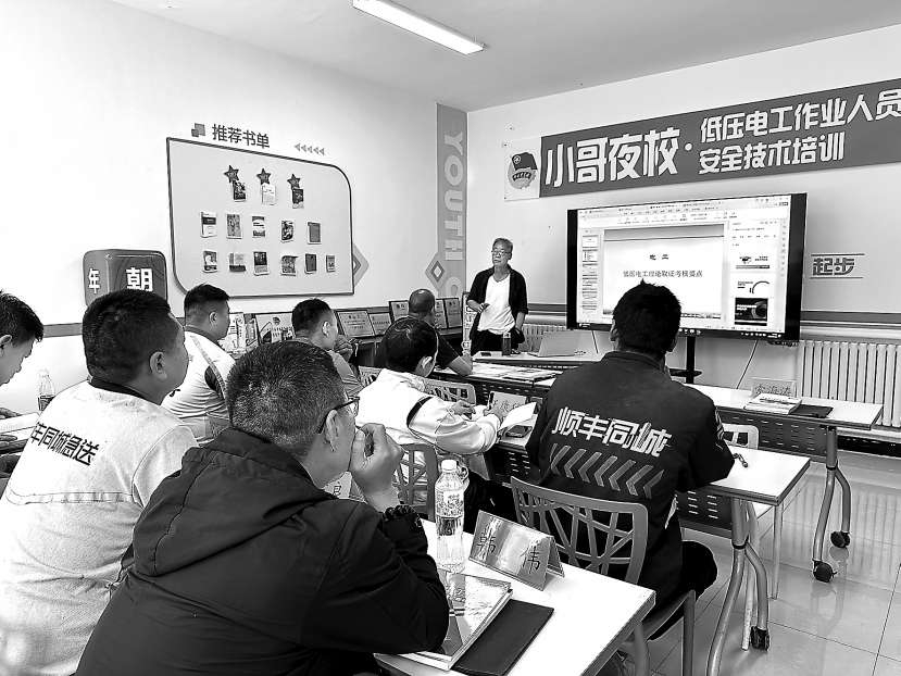 去年9月,在北京團(tuán)市委和朝陽(yáng)區(qū)委社會(huì)工作部指導(dǎo)下,小哥“低壓電工作業(yè)人員安全技術(shù)培訓(xùn)班”在朝陽(yáng)區(qū)老君堂“小哥加油站”社區(qū)青年匯開班。老君堂“小哥加油站”的社工店長(zhǎng)常凱介紹,低壓電工應(yīng)用廣泛,無(wú)論是賓館飯店,還是物業(yè)商超,甚至家庭裝修都能用得上,許多小哥對(duì)此都有需求。根據(jù)前期的調(diào)研結(jié)果,朝陽(yáng)團(tuán)區(qū)委聯(lián)合北京市工業(yè)技師學(xué)院面向新就業(yè)群體單獨(dú)開設(shè)了這個(gè)“小哥電工班”。