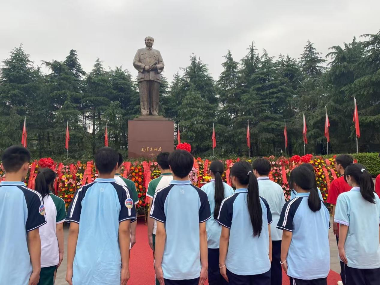 2024年4月24日,湖南省懷化市辰溪縣2000余名師生來到毛主席故鄉(xiāng)韶山開展“我的韶山行”紅色研學,圖為學生代表向毛主席銅像敬獻花籃。