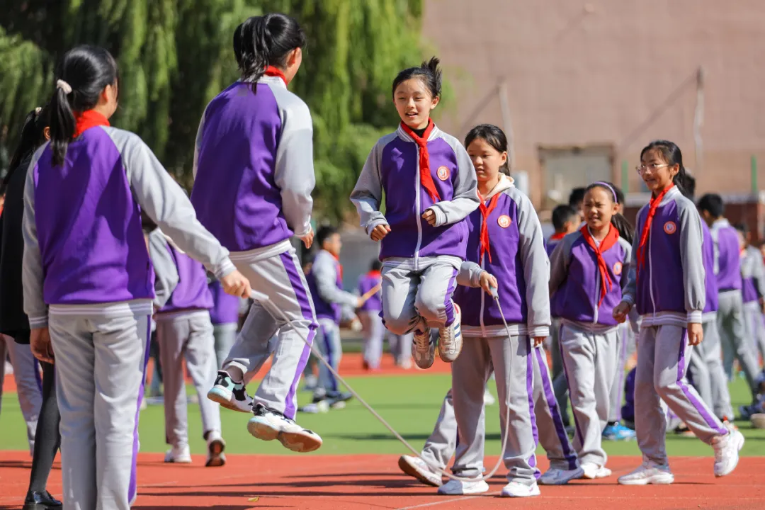 2024年10月29日,山東省青島虎山路小學的學生在課間進行跳繩。張鷹 攝