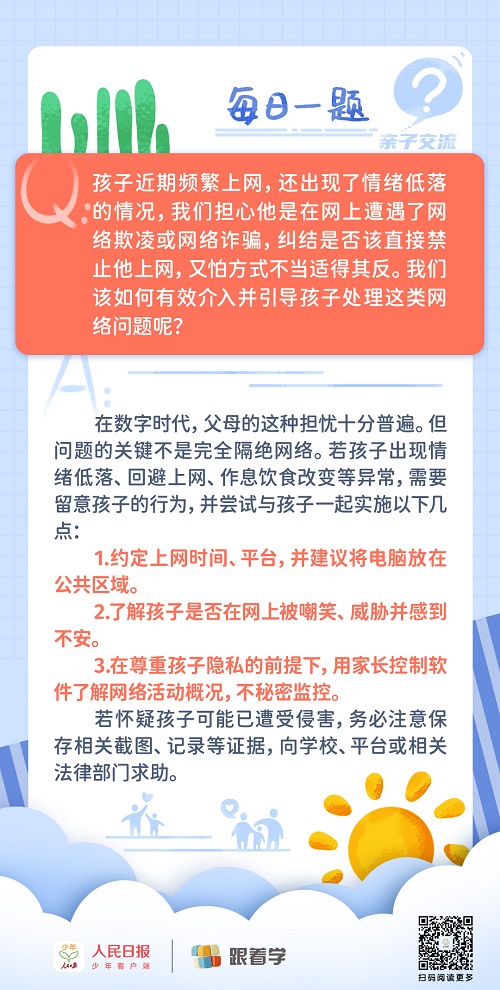每日一題丨擔(dān)心孩子遭遇網(wǎng)絡(luò)欺凌,家長(zhǎng)該怎么辦?
