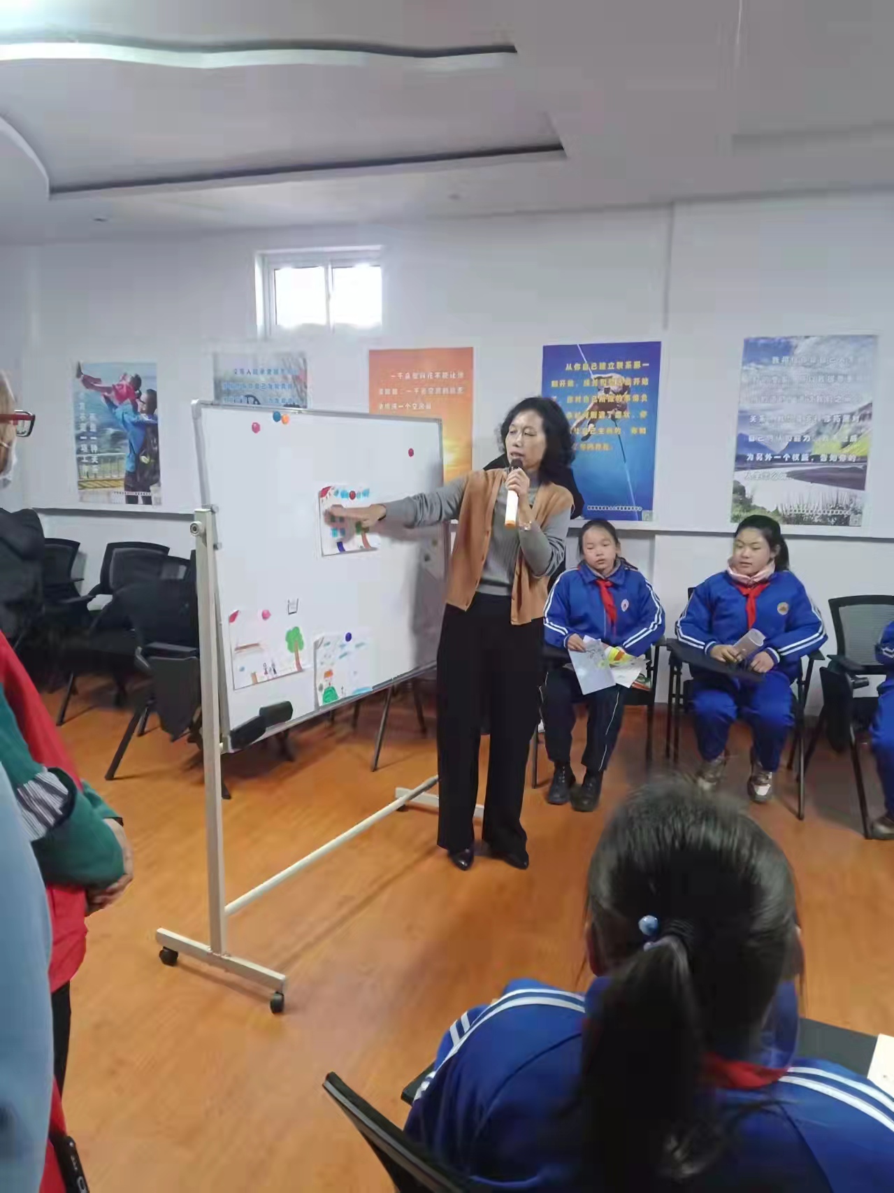 “你看,這幅畫色彩鮮艷,代表著她心理陽光,有房子,房子是人們成長的場所,投射出內(nèi)心的安全感。”在中心教室,輔導(dǎo)老師正通過繪畫,給忻府區(qū)東方紅學(xué)校一個(gè)班級(jí)的小學(xué)生做心理測試。