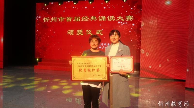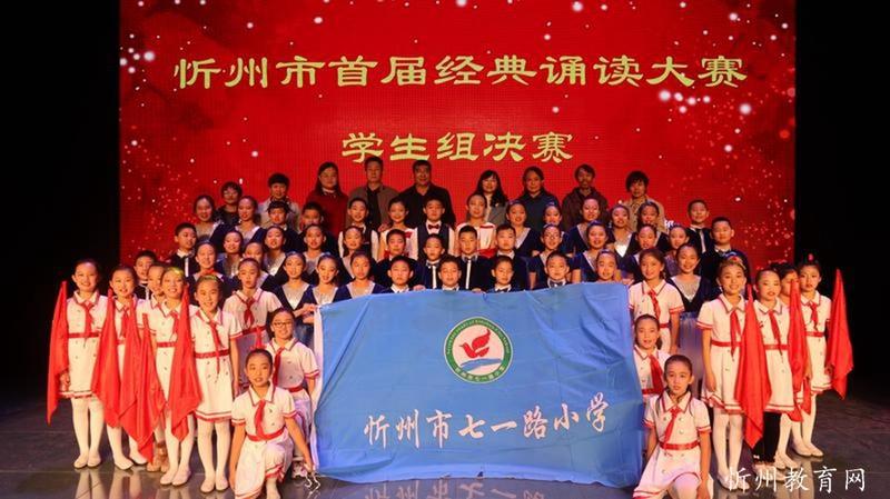 “共讀中華經(jīng)典,聆聽古詩書韻”。由中共忻州市委宣傳部主辦,忻州市廣播電視臺(tái)承辦 “忻州市首屆經(jīng)典誦讀大賽”經(jīng)過初賽海選和緊張激烈的復(fù)賽和決賽,于11月1日落下帷幕。本次比賽學(xué)生組共有四十一個(gè)參賽節(jié)目,經(jīng)過角逐,有十個(gè)節(jié)目進(jìn)入了決賽。決賽采取評(píng)委當(dāng)場亮分,現(xiàn)場點(diǎn)評(píng)的方式,最終評(píng)出一等獎(jiǎng)一名,二等獎(jiǎng)二名,三等獎(jiǎng)三名,最佳風(fēng)采獎(jiǎng)四名。七一路小學(xué)以98.51分的成績奪冠,榮獲學(xué)生組一等獎(jiǎng)。同時(shí)學(xué)校也榮獲優(yōu)秀組織獎(jiǎng)。