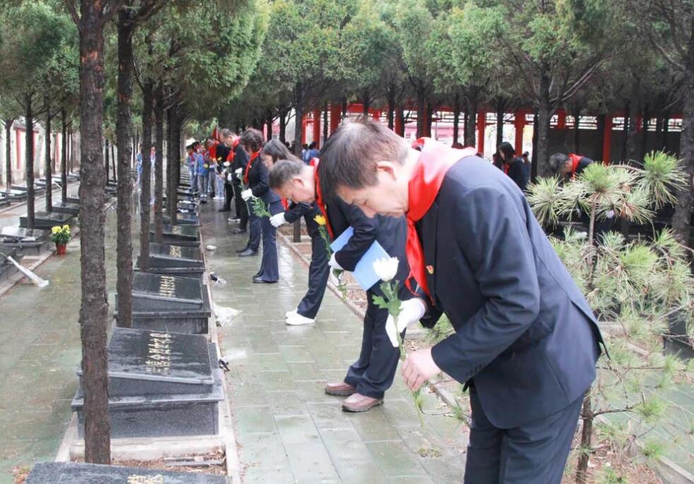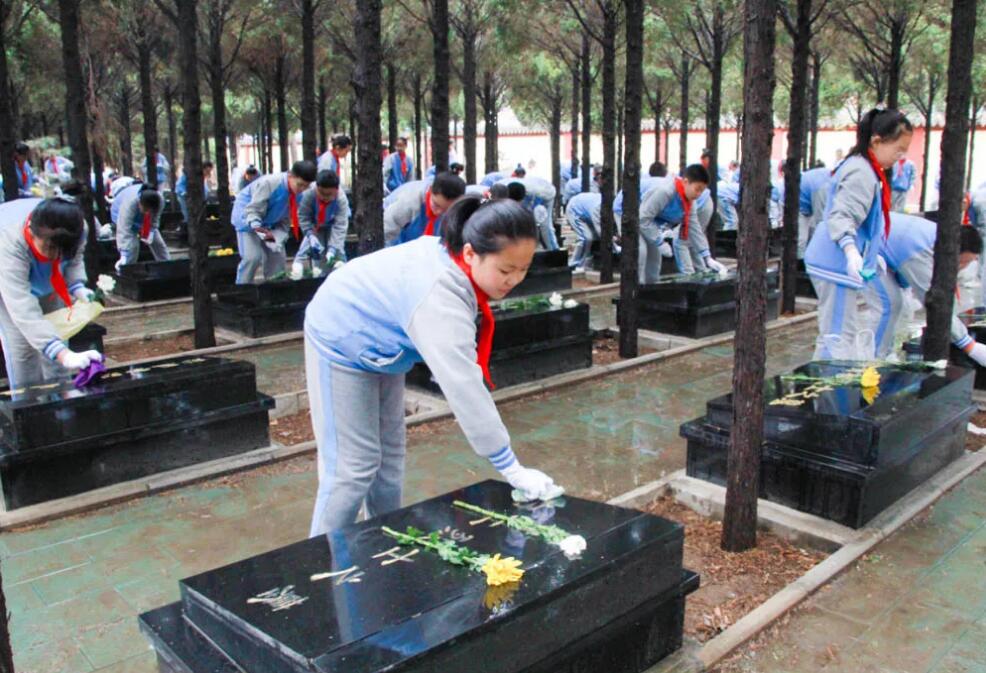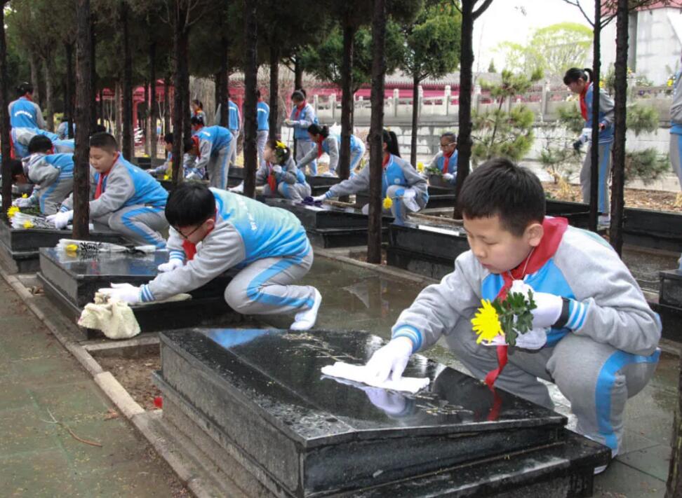 在祭奠活動(dòng)中,同學(xué)們跟隨盧俊芬老師一道學(xué)習(xí)了趙正午烈士的革命故事,為烈士陵園的先烈們敬獻(xiàn)花籃、默哀,并細(xì)致的擦拭了每座烈士墓碑,以此表達(dá)對(duì)先烈們的無(wú)限哀思。