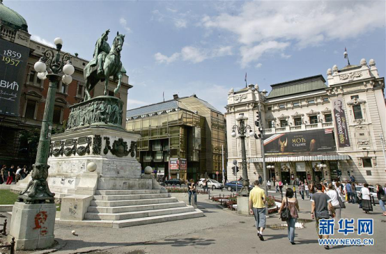 塞爾維亞米哈伊洛王子紀(jì)念碑和國(guó)家劇院(新華網(wǎng)發(fā))