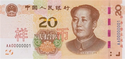 20元、10元紙幣,正面中部面額數(shù)字分別調(diào)整為光彩光變面額數(shù)字“20”、“10”,取消全息磁性開窗安全線,調(diào)整左側(cè)膠印對印圖案,右側(cè)增加光變鏤空開窗安全線和豎號碼。