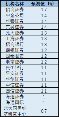 據(jù)Wind資訊數(shù)據(jù)顯示,十八家機構對6月份CPI的平均預測值為同比上漲1.2%。其中,招商證券給出了上漲1.7%的最高預測值;北大國民經濟研究中心的預測值最低,為同比上漲0.7%。