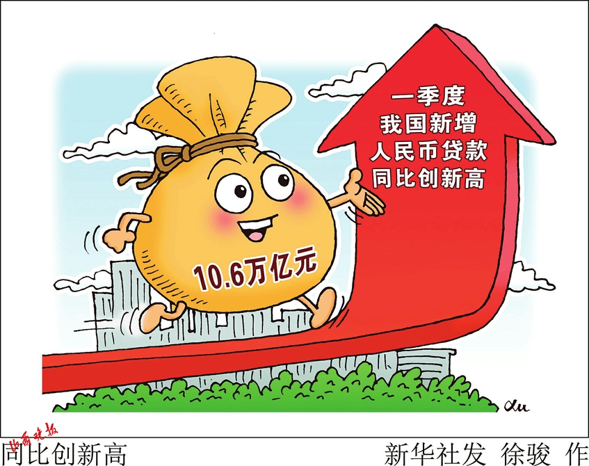 據(jù)新華社電 我國首季金融統(tǒng)計數(shù)據(jù)4月11日出爐,當(dāng)季新增人民幣貸款同比創(chuàng)新高。中國人民銀行當(dāng)日發(fā)布的數(shù)據(jù)顯示,一季度我國人民幣貸款增加10.6萬億元,同比多增2.27萬億元。其中,3月份人民幣貸款增加3.89萬億元,同比多增7497億元。