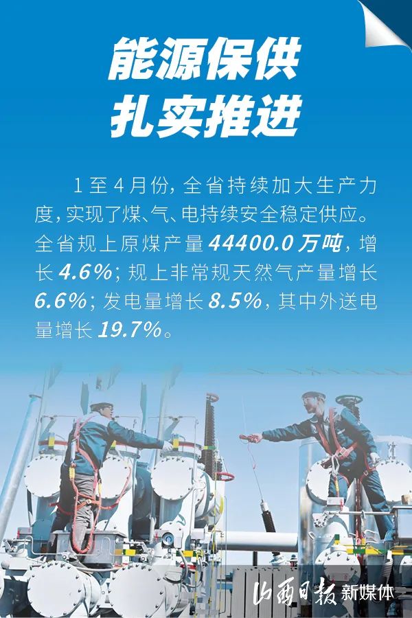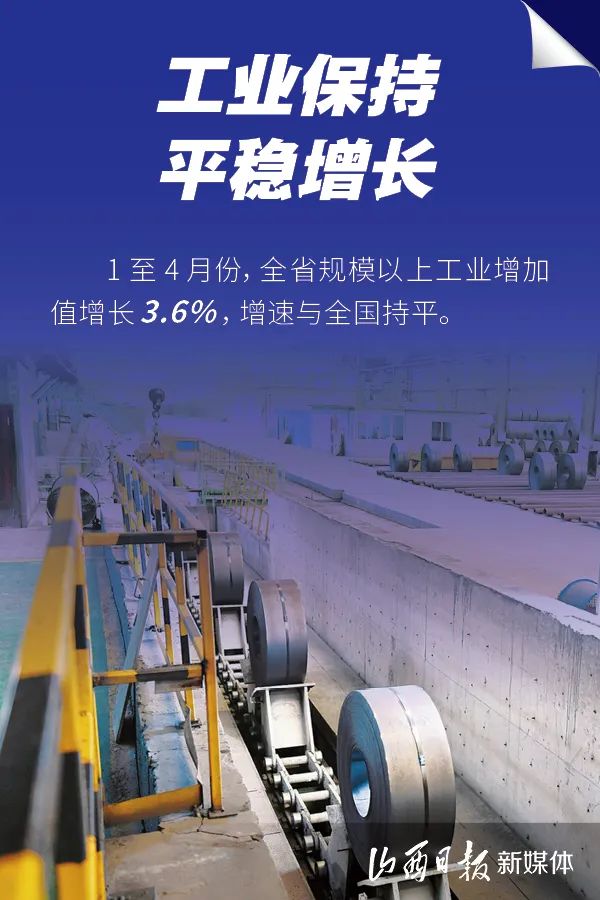 5月19日,山西省統(tǒng)計(jì)局公布1至4月份,全省經(jīng)濟(jì)運(yùn)行情況:1至4月份,全省工業(yè)生產(chǎn)平穩(wěn)增長,消費(fèi)市場加速回暖,就業(yè)物價總體穩(wěn)定,經(jīng)濟(jì)運(yùn)行延續(xù)恢復(fù)向好態(tài)勢。一組海報(bào),了解1至4月山西經(jīng)濟(jì)數(shù)據(jù)。