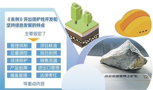 《稀土管理?xiàng)l例》(以下簡(jiǎn)稱《條例》)日前公布,自2024年10月1日起施行?!稐l例》明確,稀土資源屬于國(guó)家所有,國(guó)家依法加強(qiáng)對(duì)稀土資源的保護(hù),對(duì)稀土資源實(shí)行保護(hù)性開(kāi)采。同時(shí),鼓勵(lì)和支持稀土產(chǎn)業(yè)新技術(shù)、新工藝、新產(chǎn)品、新材料、新裝備的研發(fā)和應(yīng)用,持續(xù)提升稀土資源開(kāi)發(fā)利用水平,推動(dòng)稀土產(chǎn)業(yè)高端化、智能化、綠色化發(fā)展。專家認(rèn)為,《條例》首次以行政立法形式規(guī)范稀土資源的開(kāi)發(fā)利用,主要規(guī)定了管理體制、項(xiàng)目核準(zhǔn)、總量調(diào)控、綜合利用、環(huán)境保護(hù)、銷售流通、產(chǎn)品追溯、進(jìn)出口管理、儲(chǔ)備管理、法律責(zé)任等重點(diǎn)內(nèi)容,突出了保護(hù)性開(kāi)發(fā)和堅(jiān)持綠色發(fā)展的特點(diǎn),對(duì)推動(dòng)稀土產(chǎn)業(yè)高質(zhì)量發(fā)展具有重大意義。規(guī)范稀土資源開(kāi)發(fā)利用稀土是現(xiàn)代工業(yè)中不可或缺的重要元素和關(guān)鍵戰(zhàn)略資源。中國(guó)有色金屬工業(yè)協(xié)會(huì)黨委書(shū)記、會(huì)長(zhǎng)葛紅林表示,稀土被譽(yù)為“工業(yè)維生素”,是高新技術(shù)產(chǎn)業(yè)和國(guó)防科技工業(yè)的關(guān)鍵原料,是關(guān)系國(guó)家安全和國(guó)民經(jīng)濟(jì)命脈的戰(zhàn)略資源,對(duì)推動(dòng)新型工業(yè)化發(fā)展具有不可替代性。中國(guó)稀土集團(tuán)黨委書(shū)記、董事長(zhǎng)敖宏介紹,稀土是改造提升傳統(tǒng)產(chǎn)業(yè)、發(fā)展戰(zhàn)略性新興產(chǎn)業(yè)和國(guó)防科技工業(yè)不可或缺的關(guān)鍵材料。隨著新能源汽車、風(fēng)力發(fā)電、智能制造等戰(zhàn)略性新興產(chǎn)業(yè)和節(jié)能電機(jī)等傳統(tǒng)產(chǎn)業(yè)改造升級(jí),全球稀土需求快速增加。近年來(lái),我國(guó)圍繞稀土行業(yè)準(zhǔn)入標(biāo)準(zhǔn)、行業(yè)整合、環(huán)境保護(hù)等方面出臺(tái)了多項(xiàng)政策措施,產(chǎn)業(yè)發(fā)展良好,帶動(dòng)建立起相對(duì)完整的產(chǎn)業(yè)體系,資源儲(chǔ)量、產(chǎn)量、消費(fèi)量、貿(mào)易量均居世界第一位,并持續(xù)加強(qiáng)稀土資源保護(hù)開(kāi)發(fā)和合理利用,為科技進(jìn)步和經(jīng)濟(jì)社會(huì)發(fā)展作出了突出貢獻(xiàn)。瞄準(zhǔn)新一輪科技革命和產(chǎn)業(yè)變革方向,我國(guó)加快稀土供給側(cè)結(jié)構(gòu)性改革,不斷開(kāi)辟發(fā)展新領(lǐng)域新賽道、塑造發(fā)展新動(dòng)能新優(yōu)勢(shì),產(chǎn)業(yè)鏈不斷完善,產(chǎn)業(yè)規(guī)模不斷擴(kuò)大,產(chǎn)品品種不斷豐富,產(chǎn)品質(zhì)量不斷提高,市場(chǎng)規(guī)模不斷擴(kuò)大,國(guó)際影響力持續(xù)提升。但稀土管理仍存在一些突出問(wèn)題,包括覆蓋全產(chǎn)業(yè)鏈的管理職責(zé)、監(jiān)管措施有待完善,產(chǎn)業(yè)創(chuàng)新能力和綠色化智能化水平亟需提高,行業(yè)秩序需要進(jìn)一步規(guī)范,整治非法開(kāi)采或非法冶煉分離、無(wú)指標(biāo)或超指標(biāo)生產(chǎn)、買(mǎi)賣(mài)非法稀土產(chǎn)品等違法行為的手段不足、處罰力度不夠。隨著行業(yè)的不斷發(fā)展,產(chǎn)業(yè)鏈條的持續(xù)延伸,稀土產(chǎn)業(yè)缺少綜合性法律法規(guī)的問(wèn)題日益凸顯,難以滿足行業(yè)高質(zhì)量發(fā)展需求。稀土行業(yè)涵蓋開(kāi)采、冶煉分離、產(chǎn)品流通、二次利用、進(jìn)出口以及儲(chǔ)備等諸多環(huán)節(jié),涉及中央政府多個(gè)管理部門(mén),亟需依法建立分工明確、密切配合的管理體制。葛紅林認(rèn)為,稀土產(chǎn)業(yè)大而不強(qiáng)、全而不精的問(wèn)題依然存在,在制度保障銜接、資源保護(hù)性開(kāi)發(fā)、原始基礎(chǔ)創(chuàng)新、行業(yè)秩序規(guī)范等方面仍面臨一些困難和挑戰(zhàn)?!疤貏e是在工藝綠色化、產(chǎn)品高端化、制造智能化方面有待提升,產(chǎn)業(yè)結(jié)構(gòu)要持續(xù)優(yōu)化,產(chǎn)業(yè)秩序需要進(jìn)一步規(guī)范?!卑胶暾f(shuō)。推進(jìn)產(chǎn)業(yè)轉(zhuǎn)型升級(jí)包鋼(集團(tuán))公司黨委常委、副總經(jīng)理兼北方稀土黨委書(shū)記、董事長(zhǎng)劉培勛認(rèn)為,《條例》為解決制約產(chǎn)業(yè)高質(zhì)量發(fā)展的堵點(diǎn)、難點(diǎn)開(kāi)出了法治良方。完善了生態(tài)環(huán)境保護(hù)、資源儲(chǔ)備的有關(guān)規(guī)定,形成了更加科學(xué)有效的管理方式,更有利于稀土資源的保護(hù)性開(kāi)發(fā);明確提出國(guó)家鼓勵(lì)科技創(chuàng)新和人才培養(yǎng),支持稀土新產(chǎn)品、新材料、新工藝的研發(fā)和產(chǎn)業(yè)化,更有利于稀土資源的高質(zhì)化利用;建立起從國(guó)家到地方再到企業(yè)分層管理、各司其職、各負(fù)其責(zé)的治理體系,并首次對(duì)違法違規(guī)行為設(shè)定處罰標(biāo)準(zhǔn),進(jìn)一步加壓引導(dǎo)行業(yè)秩序整頓,更有利于行業(yè)規(guī)范化管理?!稐l例》致力于促進(jìn)稀土產(chǎn)業(yè)高質(zhì)量發(fā)展。工業(yè)和信息化部原材料工業(yè)司相關(guān)負(fù)責(zé)人解讀,國(guó)家對(duì)稀土產(chǎn)業(yè)發(fā)展實(shí)行統(