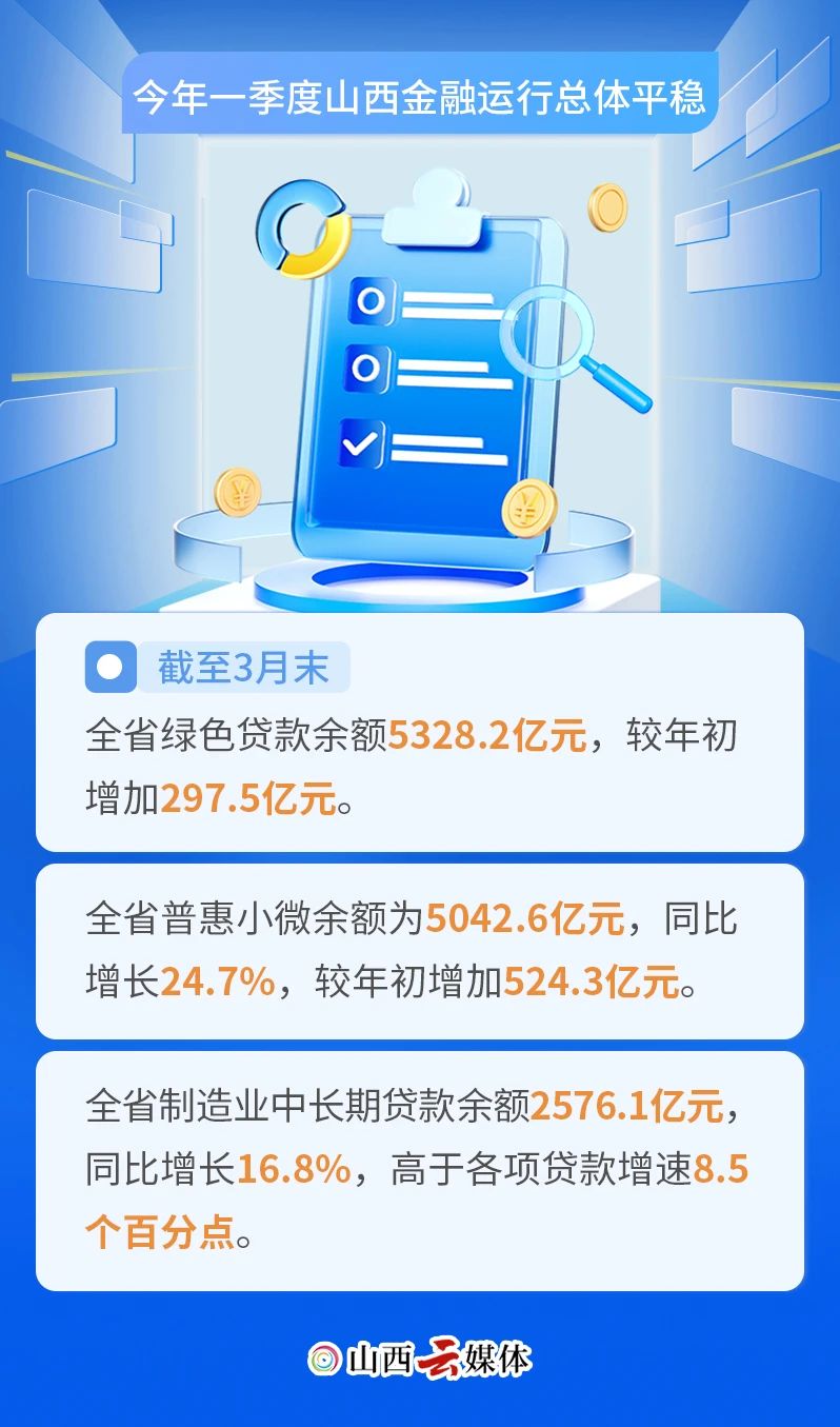 4月28日下午,人民銀行山西省分行召開2025年一季度山西省金融統(tǒng)計數(shù)據(jù)新聞發(fā)布會,會議介紹,2025年一季度,我省社會融資規(guī)模、金融機構貸款、存款均保持平穩(wěn)增長,信貸結(jié)構繼續(xù)優(yōu)化,支持經(jīng)濟恢復和高質(zhì)量轉(zhuǎn)型發(fā)展的力度進一步加大。5張海報,讀懂“新鮮”數(shù)據(jù)。