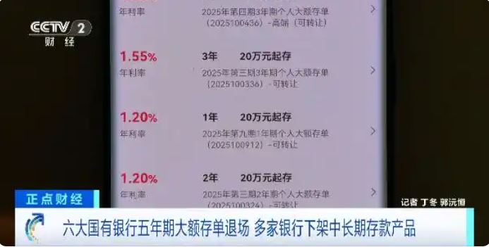記者查詢工、農(nóng)、中、建、交、郵儲六大國有銀行的App發(fā)現(xiàn),五年期大額存單已不顯示,三年期相關(guān)產(chǎn)品的利率普遍降到1.5%至1.75%。此外,部分中小銀行也開始密集調(diào)整存款業(yè)務(wù)。梅州客商銀行近期公告已下架五年期定期存款產(chǎn)品,億聯(lián)銀行等機(jī)構(gòu)App也已不顯示五年期大額存單。