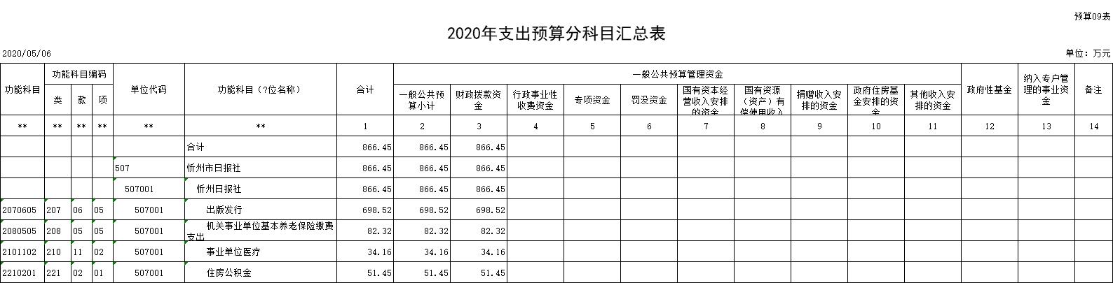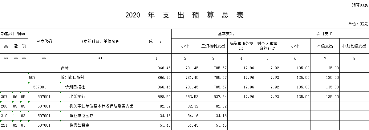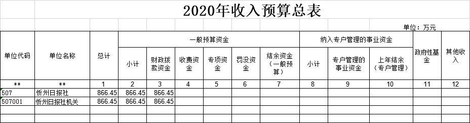 忻州日報社2020年收入預(yù)算866.45萬元,比2019年增加15.62萬元。