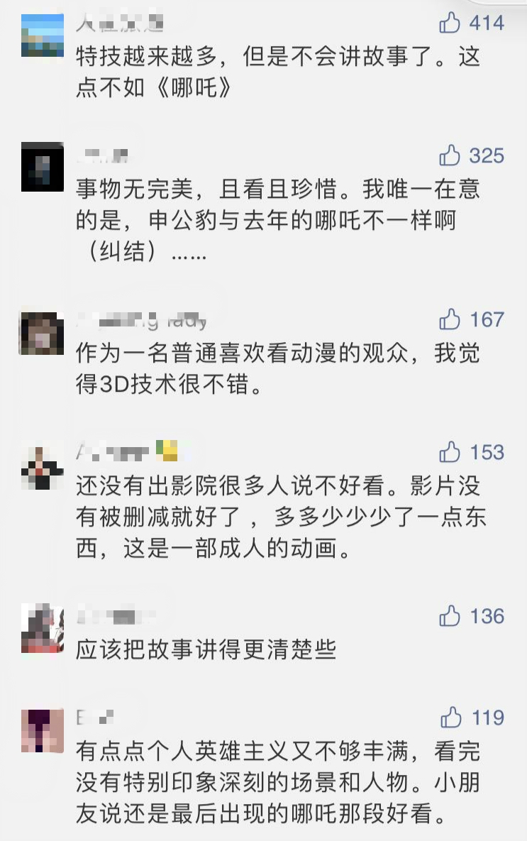 中新經(jīng)緯記者注意到,《姜子牙》上映后,網(wǎng)絡(luò)出現(xiàn)了不同聲音,有網(wǎng)友表示“特技越來越多,但是不會(huì)講故事了”。也有網(wǎng)友力挺:“事物無完美,且看且珍惜”。