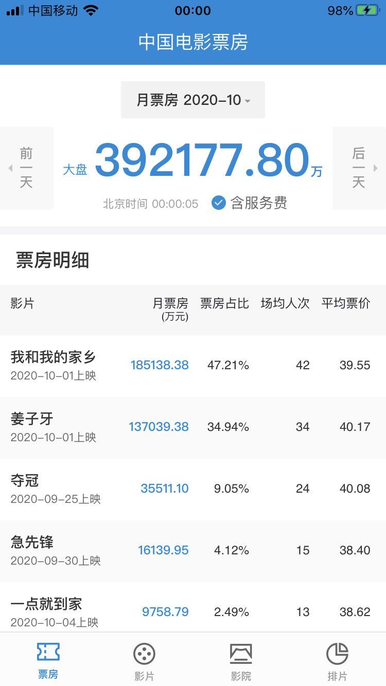 2020年國慶檔(10月1日-10月8日)落下帷幕,據(jù)國家電影專項(xiàng)資金辦公室“中國電影票房APP”數(shù)據(jù)顯示,截至10月8日24時(shí),2020年國慶檔票房達(dá)39.2億元,取得中國影史國慶檔票房第二的成績。