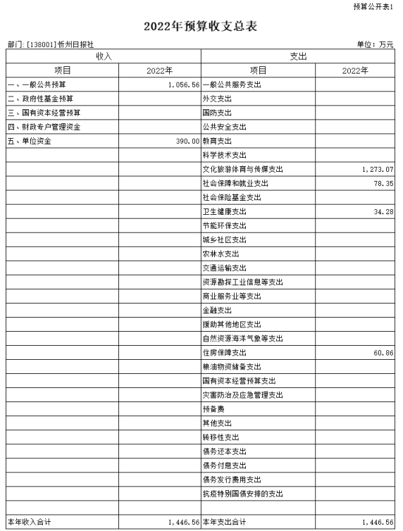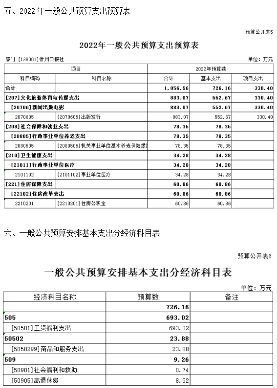 第二部分2022年度忻州日報社預算報表