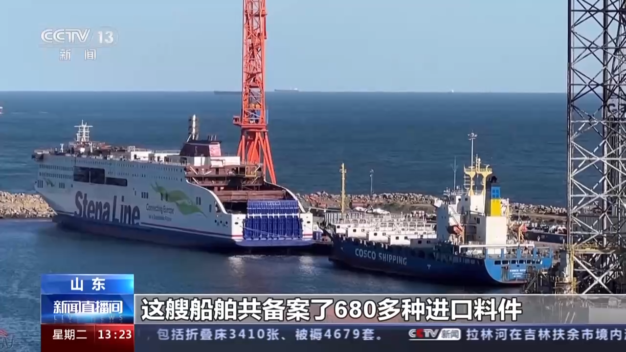 威海海關(guān)駐海港辦事處船舶監(jiān)管科科長 蔡海林:這艘船舶共備案了680多種進口料件,原計劃交付周期是今年年底,為了壓縮交付周期,我們和企業(yè)一起加快手冊備案、零部件通關(guān)和供船物料周轉(zhuǎn)的速度,目前手冊完成進度已經(jīng)超過了90%。