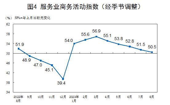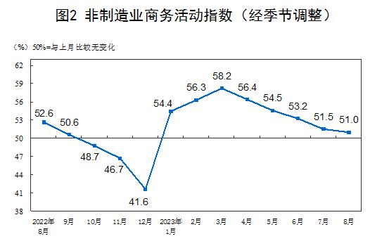 此外,在中國(guó)非制造業(yè)采購經(jīng)理指數(shù)運(yùn)行情況方面,8月份,非制造業(yè)商務(wù)活動(dòng)指數(shù)為51.0%,比上月下降0.5個(gè)百分點(diǎn),仍高于臨界點(diǎn),非制造業(yè)持續(xù)擴(kuò)張。