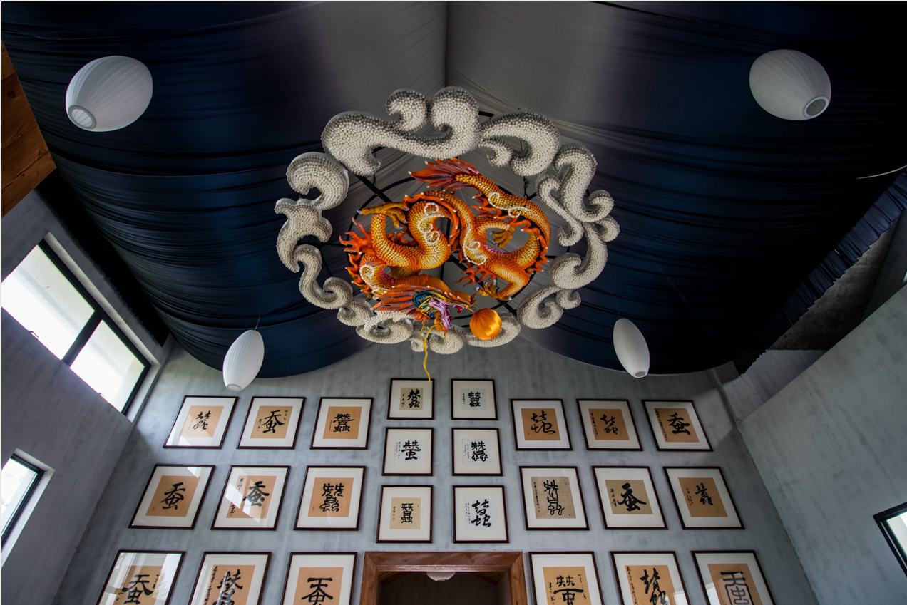 走入云龍村的云龍記憶館,縱使見多識廣,全國主流媒體記者們也依然被盤旋于頂?shù)拇T大金龍震撼到了,紛紛掏出手機(jī)拍個(gè)不停:這條金龍是用15000多個(gè)蠶繭制作而成,外圍是蠶繭組成的祥云,包裹著里面的金龍,這是云龍村的象征。