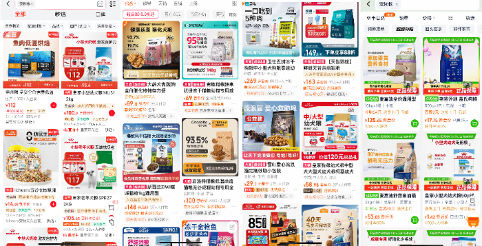 有消費者反映,為給寵物選到合適口糧,需像科研人員一樣仔細(xì)研究配料表、檢測報告和價格,以防“踩雷”。部分電商平臺上,寵物糧廣告鋪天蓋地,“高蛋白42%”“凍干鎖鮮”等宣傳語令人眼花繚亂,難以抉擇。