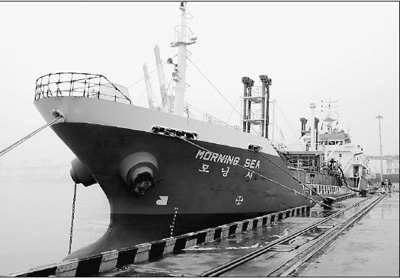 中國海關(guān)根據(jù)二〇一五年上半年雙邊貿(mào)易量靜態(tài)估算,中韓自貿(mào)協(xié)定生效一年內(nèi),將有二百六十億美元中國出口貨物和二百億美元的韓國出口貨物在對方享受關(guān)稅優(yōu)惠。圖為去年十二月二十日,中韓自貿(mào)協(xié)定生效當日,載有兩千六百噸液體硫磺的韓國貨輪“晨海號”正在免稅通關(guān)。新華社發(fā)