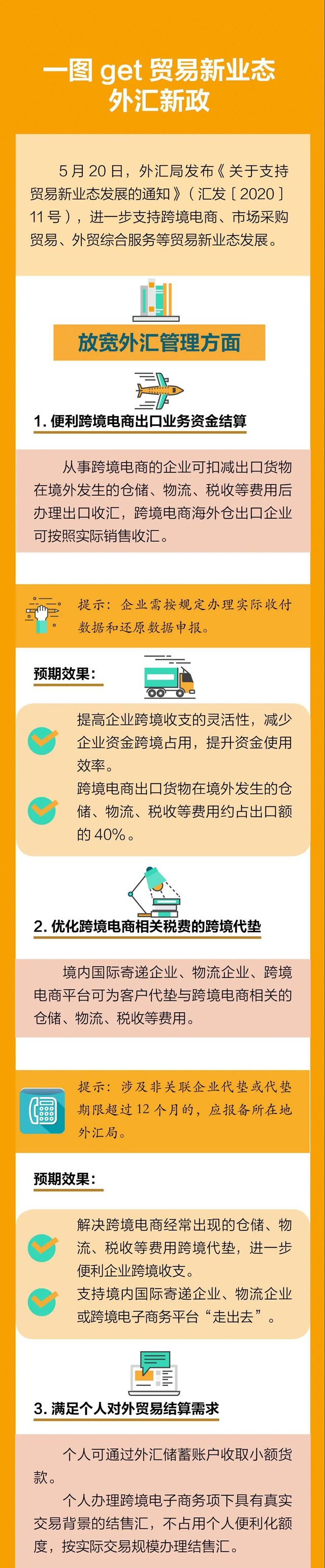人民網(wǎng)北京5月21日電(記者 杜燕飛)為更好支持貿(mào)易新業(yè)態(tài)發(fā)展,促進(jìn)外貿(mào)提質(zhì)增效,扎實(shí)做好“六穩(wěn)”工作,全面落實(shí)“六?!比蝿?wù),日前,國(guó)家外匯管理局發(fā)布《國(guó)家外匯管理局關(guān)于支持貿(mào)易新業(yè)態(tài)發(fā)展的通知》(以下簡(jiǎn)稱《通知》),便利相關(guān)外匯業(yè)務(wù)辦理?!锻ㄖ纷园l(fā)布之日起實(shí)施。