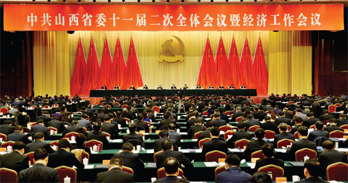 中國共產(chǎn)黨山西省第十一屆委員會(huì)第二次全體會(huì)議暨經(jīng)濟(jì)工作會(huì)議會(huì)場。(山西日報(bào)記者 李聯(lián)軍 李兆民 攝)