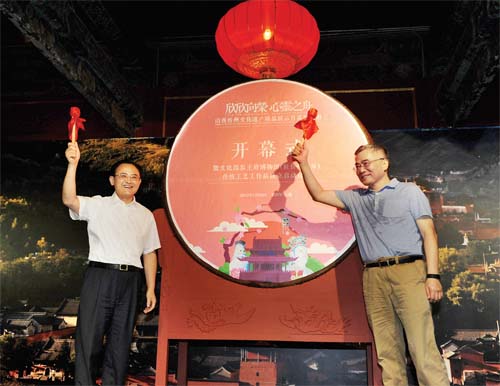 本報(bào)訊(記者 任逢春)7月22日,經(jīng)過扎實(shí)細(xì)致的準(zhǔn)備,由文化部恭王府博物館和忻州市委、市政府共同主辦的“欣欣向榮,心靈之舟”山西忻州文化遺產(chǎn)精品展示月系列活動(dòng)正式亮相首都。同日,文化部恭王府博物館(駐忻州靜樂)傳統(tǒng)工藝工作站正式成立,文化部副部長項(xiàng)兆倫和市委書記李俊明一同擊鼓啟幕,市委常委、常務(wù)副市長趙志堅(jiān)主持開幕式。文化部非遺司司長陳通,文化部恭王府博物館館長孫旭光,省委宣傳部常務(wù)副部長李福明,省文化廳副廳長趙銀邦,市委常委、宣傳部長陳義青,市委常委、秘書長崔建新,市人大常委會副主任、靜樂縣委書記李德新,副市長王月娥,以及文化部恭王府博物館、文化部離退休人員服務(wù)中心、省委宣傳部、省文化廳和我市的有關(guān)領(lǐng)導(dǎo)同志出席開幕活動(dòng)。中央、省、市媒體記者和各地游人一同見證開幕。