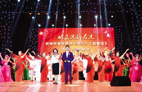 本報(bào)訊(記者康素芳 張建國(guó))9月18日,忻州市宣傳貫徹《憲法》《監(jiān)察法》專題文藝晚會(huì)在忻州劇院匯報(bào)演出。省人大常委會(huì)副主任、市委書記李俊明,市委副書記、市長(zhǎng)鄭連生,市政協(xié)主席劉鋼柱,市委常委、宣傳部長(zhǎng)陳義青,市委常委、市紀(jì)委書記、市監(jiān)委主任范晉昌,市委常委、秘書長(zhǎng)崔建新,市委常委、岢嵐縣委書記王志東,市委常委、忻州軍分區(qū)政委劉瑞生,市政協(xié)副主席邊升陽、高志偉,市檢察院檢察長(zhǎng)周東曙,市政府秘書長(zhǎng)郭寶厚等出席并與我市千余名黨員干部一同觀看演出。