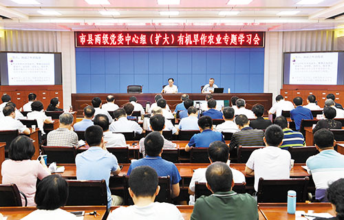 圖為市縣兩級(jí)黨委中心組(擴(kuò)大)有機(jī)旱作農(nóng)業(yè)專題學(xué)習(xí)會(huì)會(huì)場(chǎng)。本報(bào)記者 劉紀(jì)森 攝