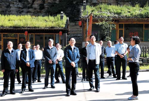 省人大常委會(huì)副主任、市委書記李俊明和參會(huì)人員在寧武縣涔山鄉(xiāng)大石洞村觀摩整村提升情況。本報(bào)記者 劉紀(jì)森 攝