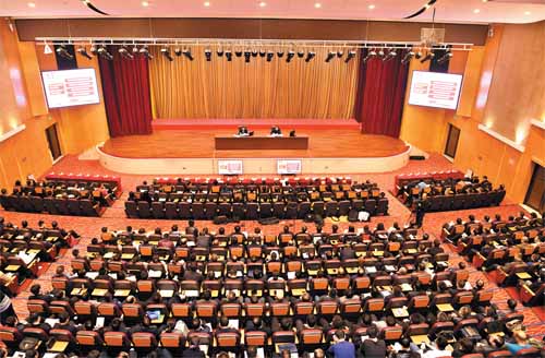 圖為我市學(xué)習(xí)貫徹黨的十九屆四中全會精神省委宣講團報告會會場。本報記者 劉紀森 攝