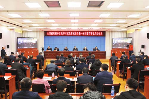 圖為全市相對集中行政許可權(quán)改革推進(jìn)會會場。本報記者 范濤 攝