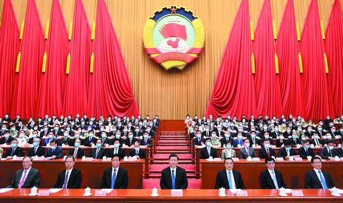 5月27日,中國人民政治協(xié)商會議第十三屆全國委員會第三次會議在北京閉幕。這是習近平、李克強、栗戰(zhàn)書、王滬寧、趙樂際、韓正、王岐山等在主席臺就座。 新華社記者 謝環(huán)馳 攝