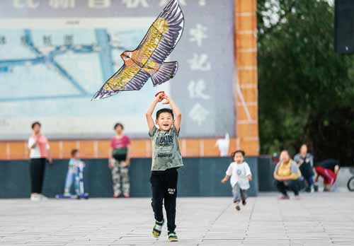 把增進(jìn)人民福祉、促進(jìn)人的全面發(fā)展作為一切工作的出發(fā)點(diǎn)和落腳點(diǎn),是高質(zhì)量發(fā)展的價值體現(xiàn)。山西省稷山縣打造富有稷山特色的魅力城市,建設(shè)集生態(tài)、休閑、娛樂為一體的綠色生態(tài)公園,進(jìn)一步提升市民游園的獲得感幸福感。圖為2020年5月16日,稷山縣民樂園廣場不少市民帶著孩子前來游玩,感受初夏好時光。 人民圖片 史云平/攝