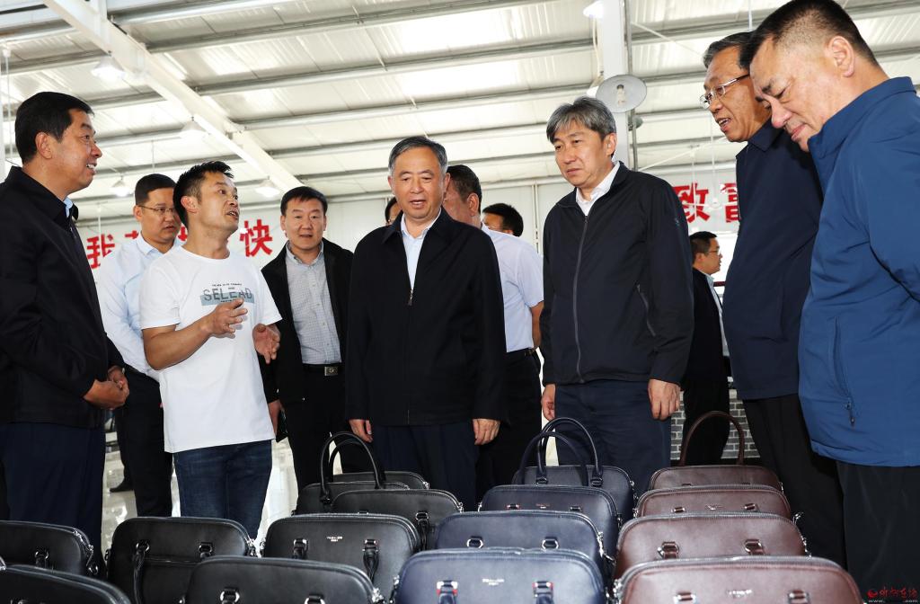 在代縣,陳志剛一行在濱河移民產(chǎn)業(yè)園區(qū)雁弘紡織廠和新城村光伏扶貧電站進行調(diào)研,對移民搬遷后續(xù)扶持項目、光伏扶貧等工作提出要求。在繁峙縣,陳志剛一行先后考察了駿凱皮具手工業(yè)扶貧工廠、田園毛驢養(yǎng)殖科技發(fā)展有限公司、晉魯諾佳食品有限公司,詳細了解產(chǎn)業(yè)扶貧、社區(qū)后續(xù)管理、毛驢養(yǎng)殖培訓項目、脫水蔬菜加工等情況。