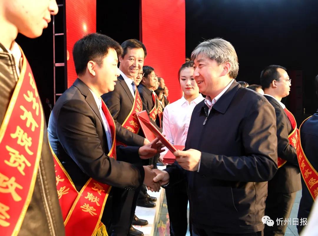 為弘揚(yáng)忻州扶貧精神,凝聚決戰(zhàn)收官力量,為決戰(zhàn)完勝脫貧攻堅(jiān)、全面建成小康社會(huì)繼續(xù)努力、不懈奮斗,在第7個(gè)全國(guó)扶貧日來臨之際,10月17日,我市隆重舉行脫貧攻堅(jiān)“一獎(jiǎng)雙模雙先”頒獎(jiǎng)儀式。市委書記鄭連生,市委副書記、市長(zhǎng)朱曉東,市委常委、組織部長(zhǎng)秦書義,市委常委、秘書長(zhǎng)崔建新,副市長(zhǎng)裴峰,市政協(xié)副主席高志偉,市人大常委會(huì)秘書長(zhǎng)張?zhí)m軍出席頒獎(jiǎng)儀式并為獲獎(jiǎng)?wù)哳C獎(jiǎng)。部分專項(xiàng)扶貧辦公室代表、各縣(市、區(qū))分管扶貧副縣(市、區(qū))長(zhǎng)、扶貧辦主任、獲獎(jiǎng)代表等共計(jì)210余人參加。