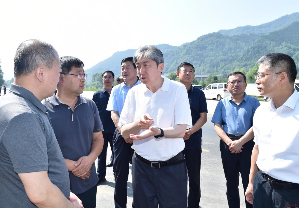 朱曉東先后來到滄榆高速忻阜段阜平方向K285+500處、金崗庫鄉(xiāng)蛤蟆石村、石咀鎮(zhèn)污水廠橋等地,認(rèn)真聽取有關(guān)工作匯報,實地察看塌陷路段搶修進(jìn)展情況,詳細(xì)了解道路通行、交通安全隱患風(fēng)險點排查、防汛排澇準(zhǔn)備、河道行洪安全、地質(zhì)災(zāi)害防范等情況,并提出工作要求。