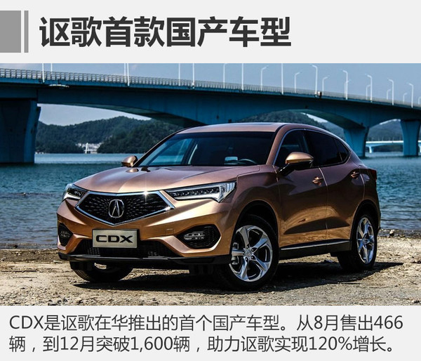2016年7月,首款國產(chǎn)車型CDX正式上市,新車定位緊湊型SUV,同時也是謳歌產(chǎn)品體系中級別最小SUV車型。CDX上市后逐漸得到市場的認(rèn)可,從8月份的466輛,增長至11月份的1,110輛,12月更是突破1,600輛。